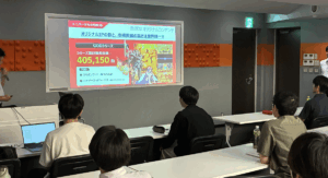 株式会社ユニバーサルエンターテインメントの皆様に来校していただき、昨年に続き今年も採用説明会&開発者座談会を開催しました。
